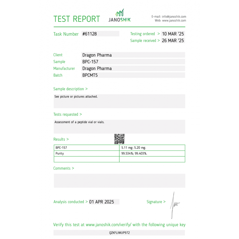 Dragon Pharma’s BPC 157 is available through verified online retailers specializing in peptides and supplements. Confirm authenticity before purchase to ensure high quality.