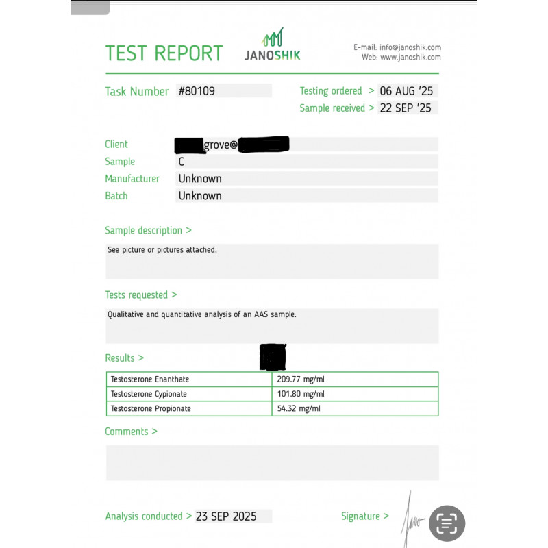 This is a pretty good test blend, I did a cycle and gained around 25lbs. But I also mixed it with Tren -E 200mg.